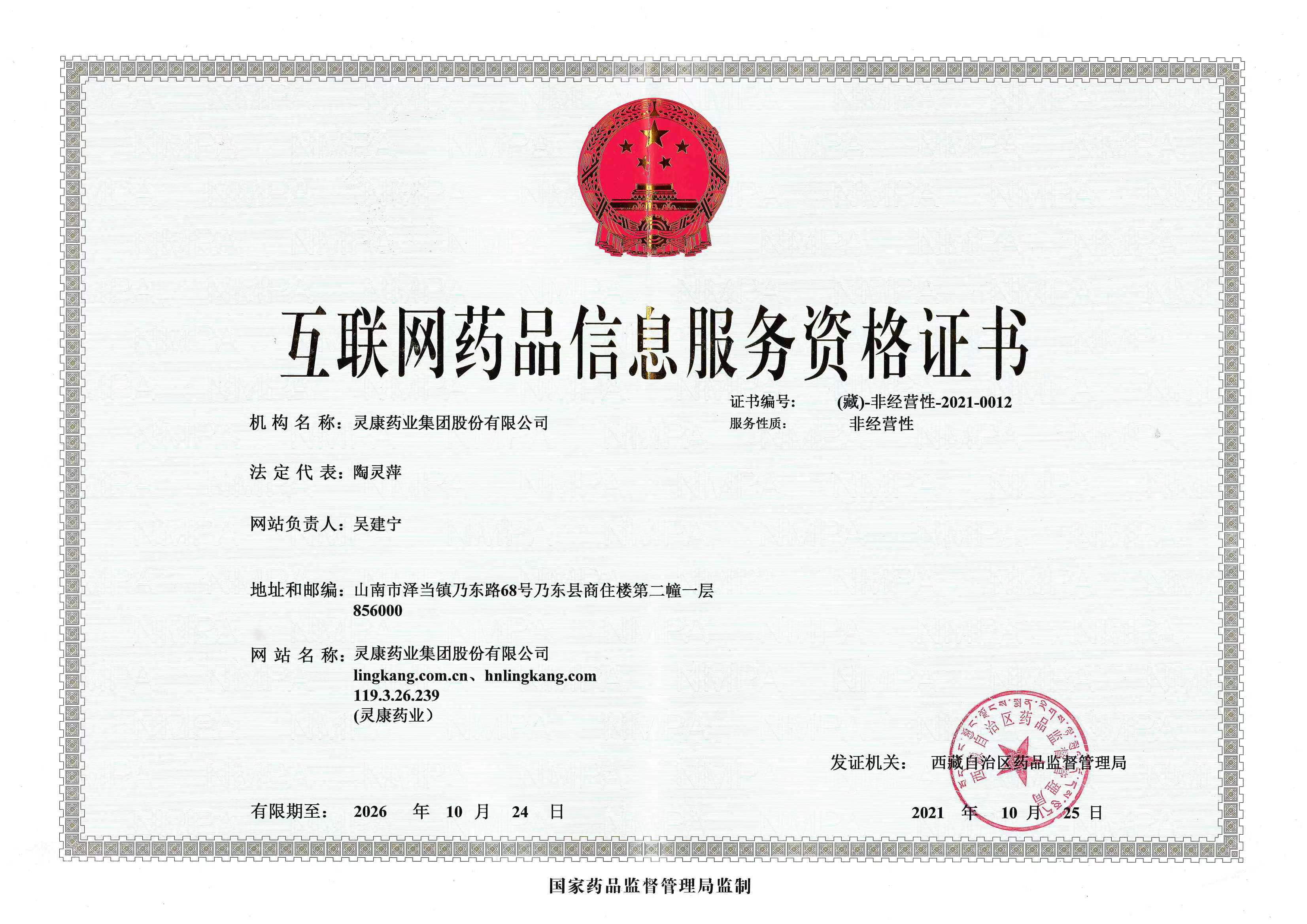 互聯(lián)網(wǎng)藥品信息服務(wù)資格證書(shū):(藏)-非經(jīng)營(yíng)性-2021-0012