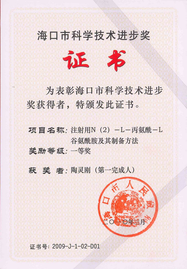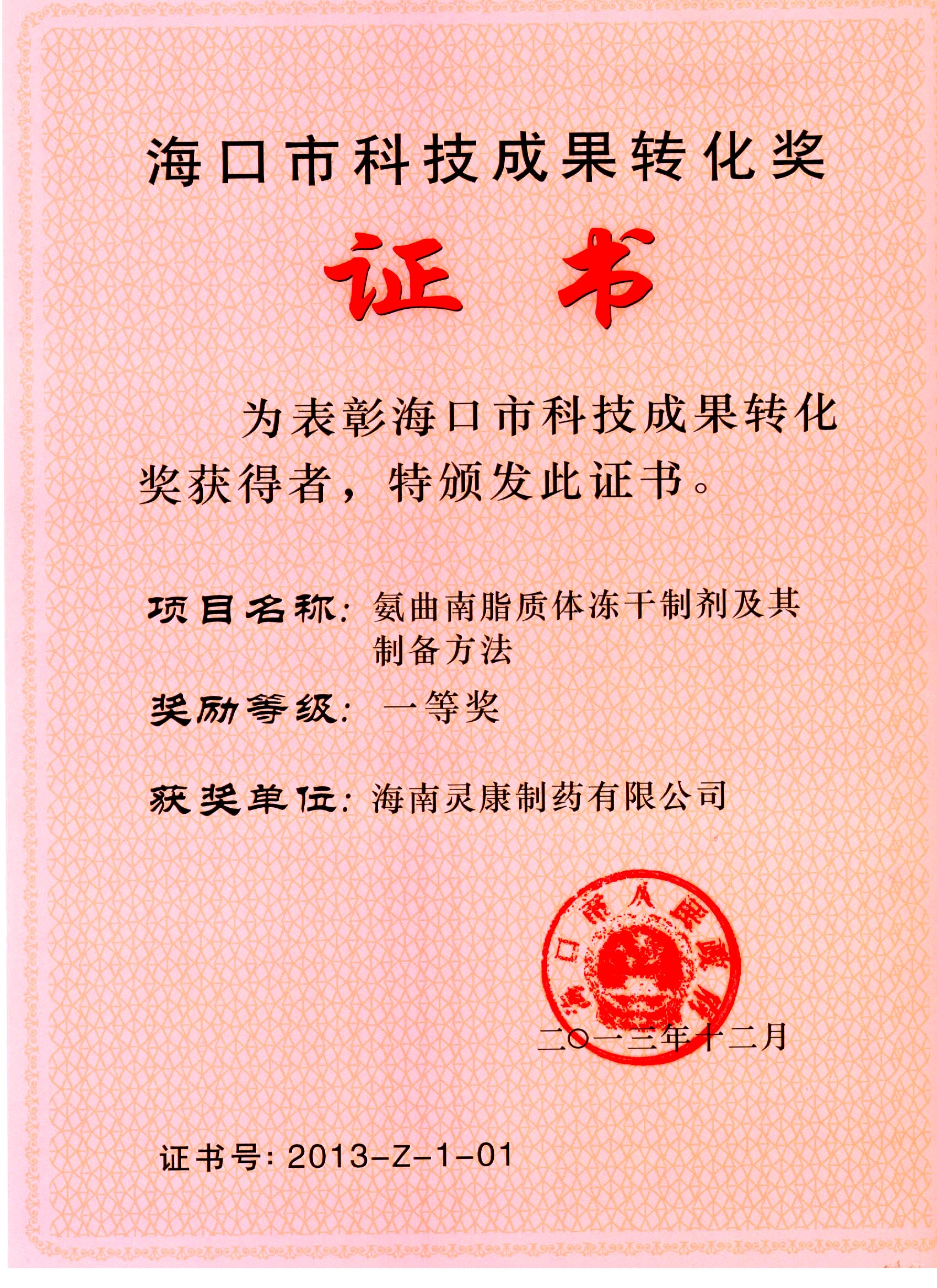 2013市科技成果轉(zhuǎn)化一等獎氨曲南