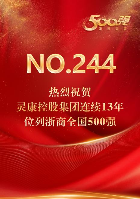 “2024浙商全國500強”榜單正式發(fā)布,靈康控股集團位列第244位,綜合實力連續(xù)13年位列浙商全國500強。